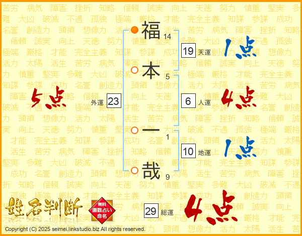 福本一哉さんの総運は29画の4点!