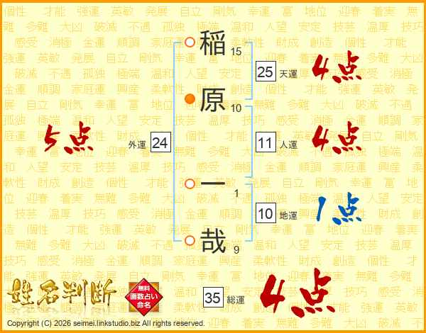 稲原一哉さんの総運は35画の4点!