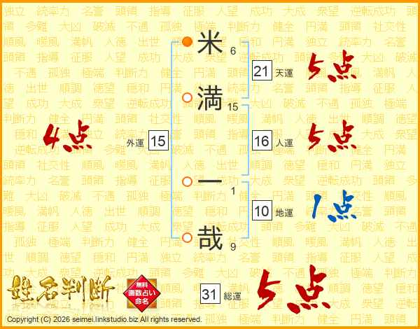 米満一哉さんの総運は31画の5点!