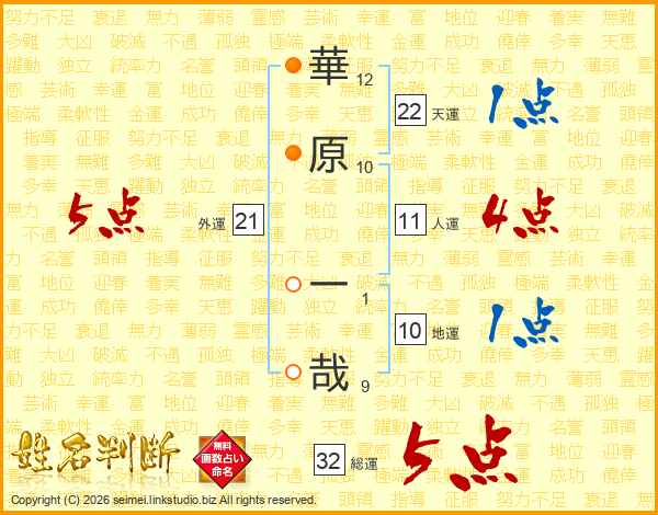 華原一哉さんの総運は32画の5点!