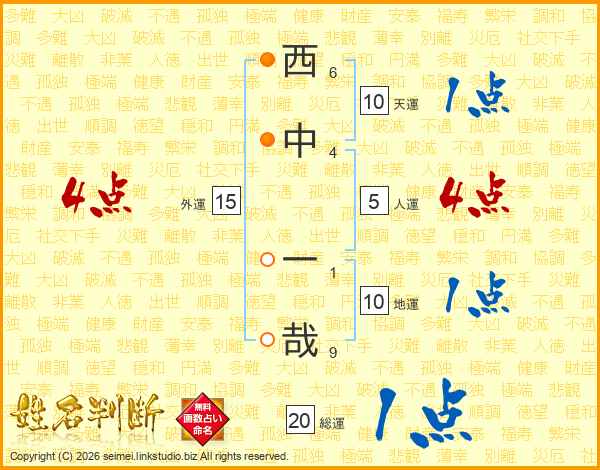 西(6画)中(4画) 一(1画)哉(9画)