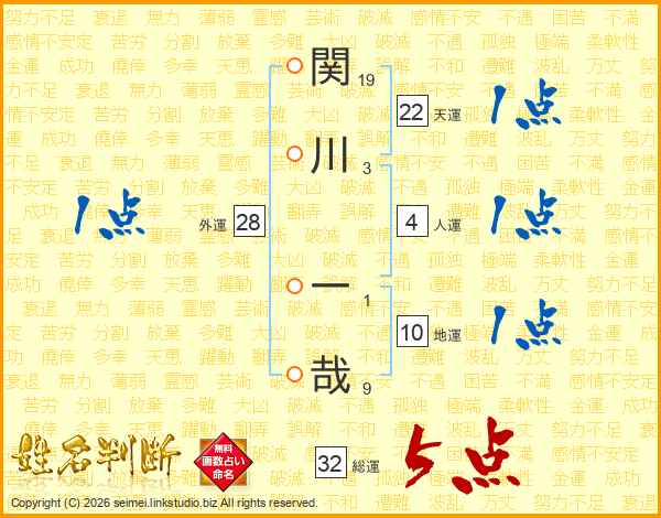 関川一哉さんの総運は32画の5点!