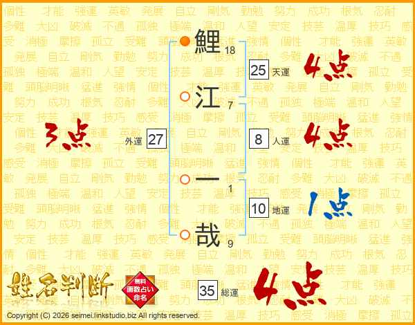 鯉江一哉さんの天運は25画の4点!
