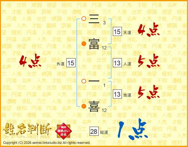 三富一喜さんの総運は28画の1点!