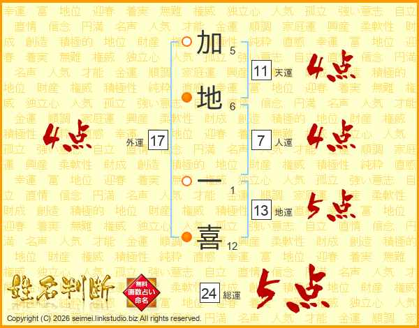 加地一喜さんの総運は24画の5点!