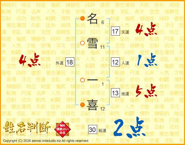 名雪一喜さんの天運は17画の4点!