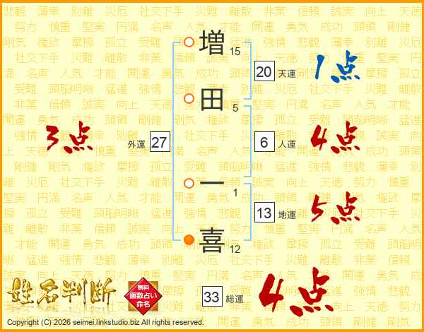 増田一喜さんの総運は33画の4点!