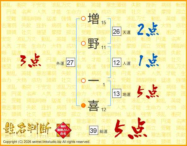 増野一喜さんの総運は39画の5点!