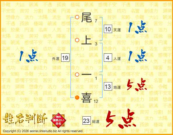 尾上一喜さんの地運は13画の5点!