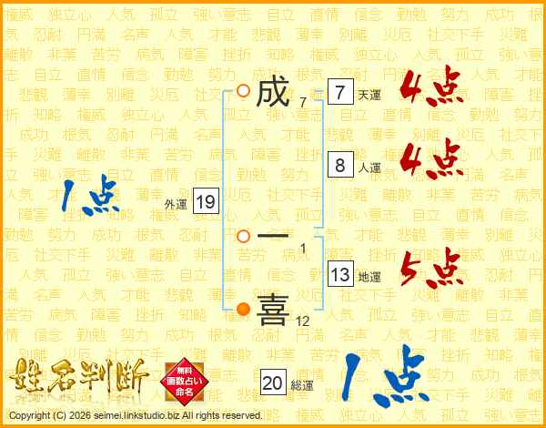 成一喜さんの地運は13画の5点!