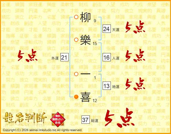 柳樂一喜さんの天運は24画の5点!