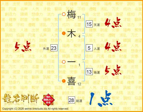 梅木一喜さんの地運は13画の5点!