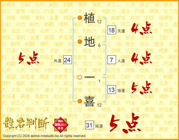 植地一喜さんの総運は31画の5点!