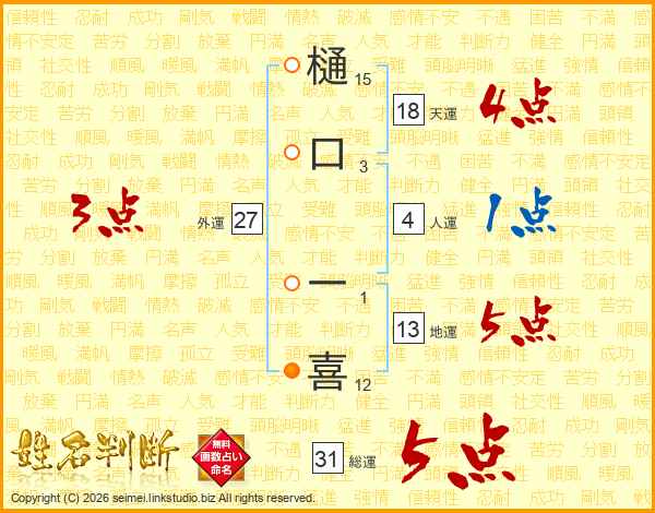 樋口一喜さんの総運は31画の5点!