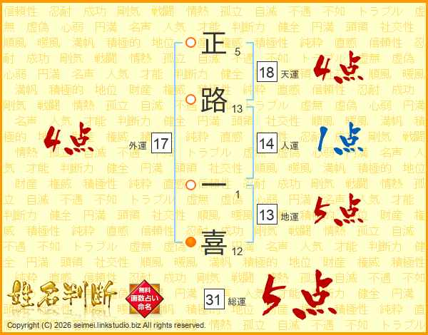正路一喜さんの総運は31画の5点!