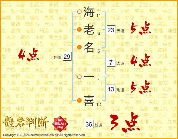 海老名一喜さんの総運は36画の3点!