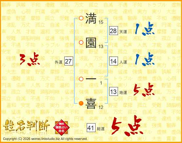 満園一喜さんの総運は41画の5点!