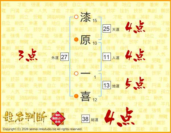 漆原一喜さんの総運は38画の4点!