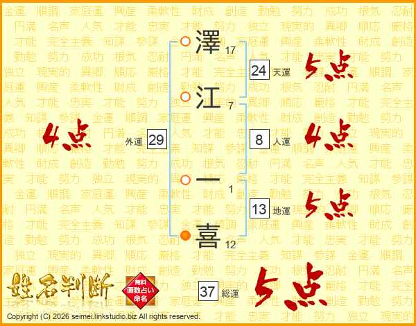 澤江一喜さんの総運は37画の5点!
