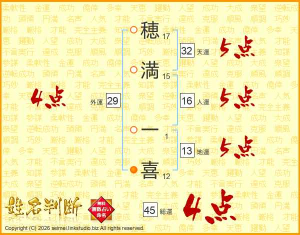 穂満一喜さんの総運は45画の4点!