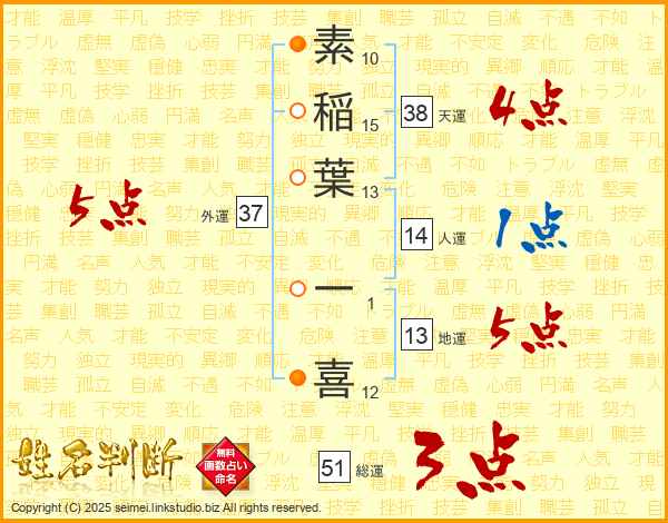 素稲葉一喜さんの総運は51画の3点!