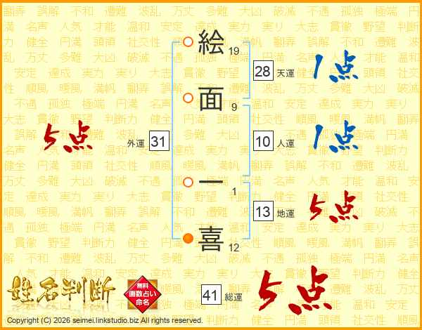 絵面一喜さんの総運は41画の5点!