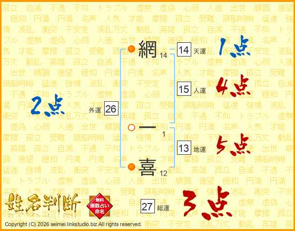 網一喜さんの総運は27画の3点!