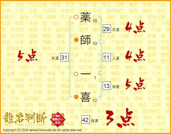 薬師一喜さんの外運は31画の5点!