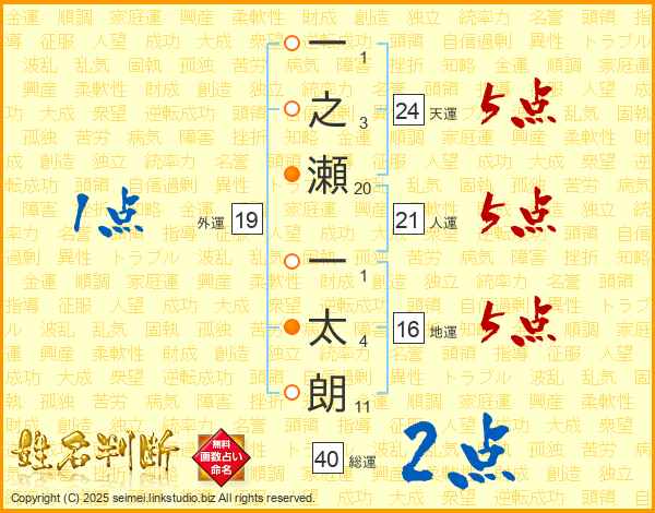 一(1画)之(3画)瀬(20画) 一(1画)太(4画)朗(11画)