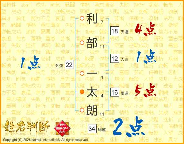 利部一太朗さんの総運は34画の2点!