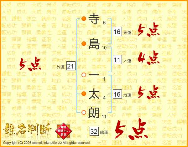 寺島一太朗さんの外運は21画の5点!