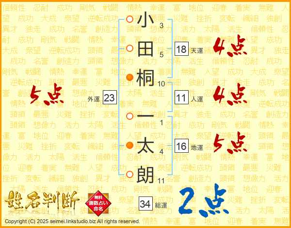 小田桐一太朗さんの総運は34画の2点!