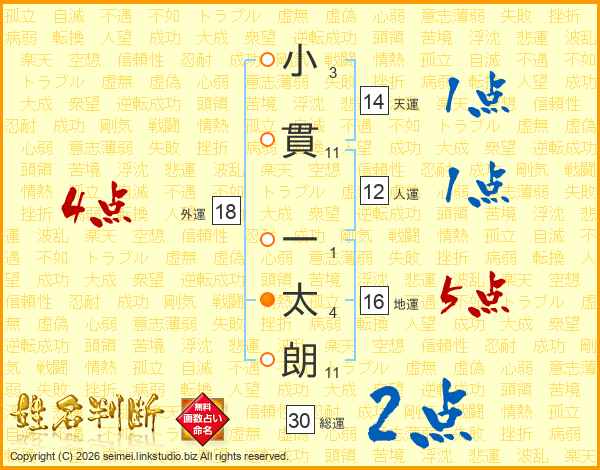 小貫一太朗さんの外運は18画の4点!