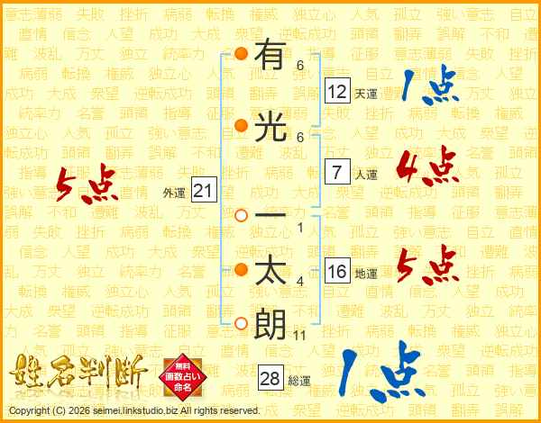 有光一太朗さんの総運は28画の1点!