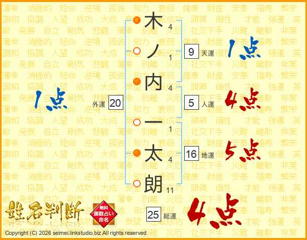 木ノ内一太朗さんの総運は25画の4点!