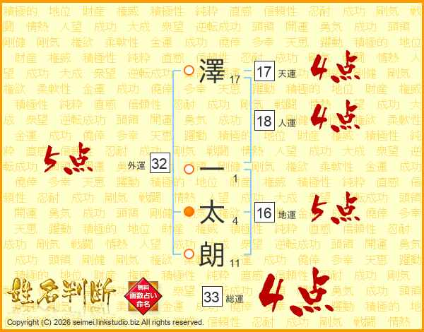 澤一太朗さんの総運は33画の4点!