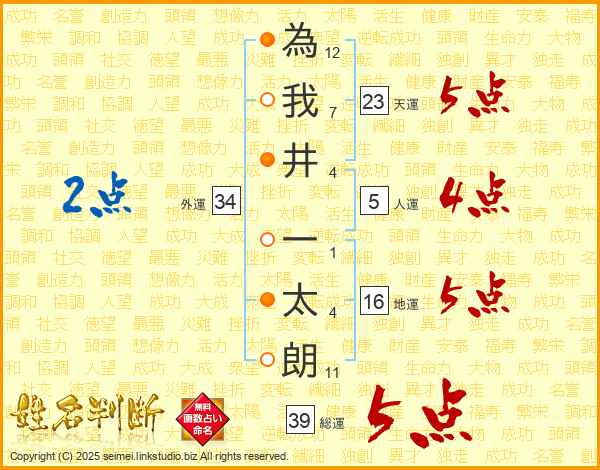 為我井一太朗さんの総運は39画の5点!