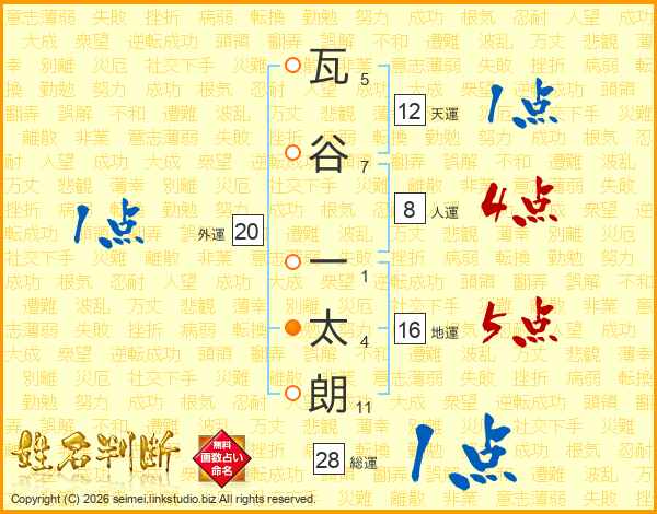 瓦谷一太朗さんの総運は28画の1点!