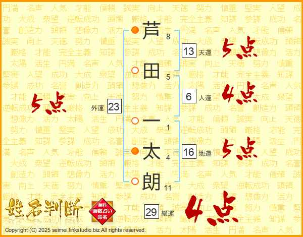 芦田一太朗さんの天運は13画の5点!