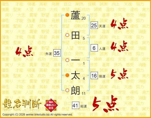 蘆田一太朗さんの総運は41画の5点!
