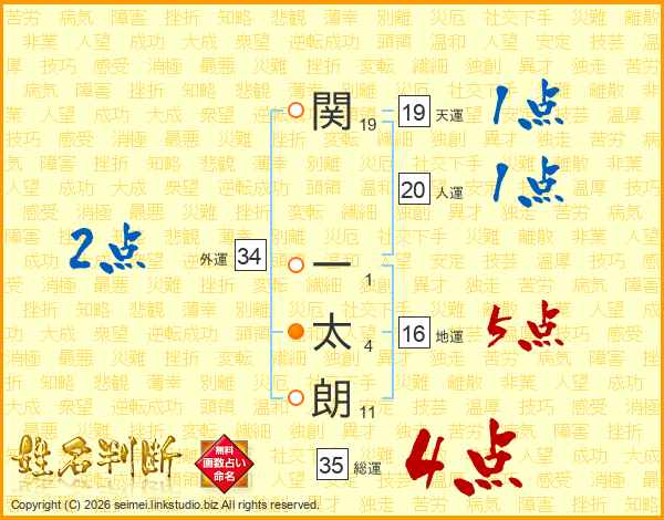 関一太朗さんの総運は35画の4点!
