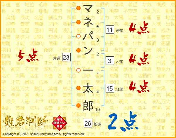 マネパン一太郎さんの総運は26画の2点!