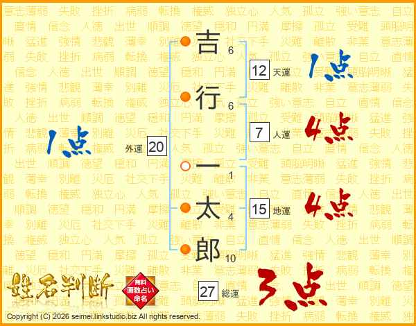 吉行一太郎さんの総運は27画の3点!