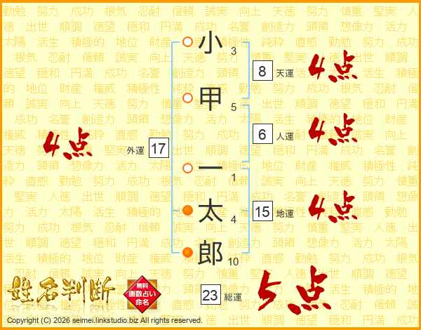 小(3画)甲(5画) 一(1画)太(4画)郎(10画)