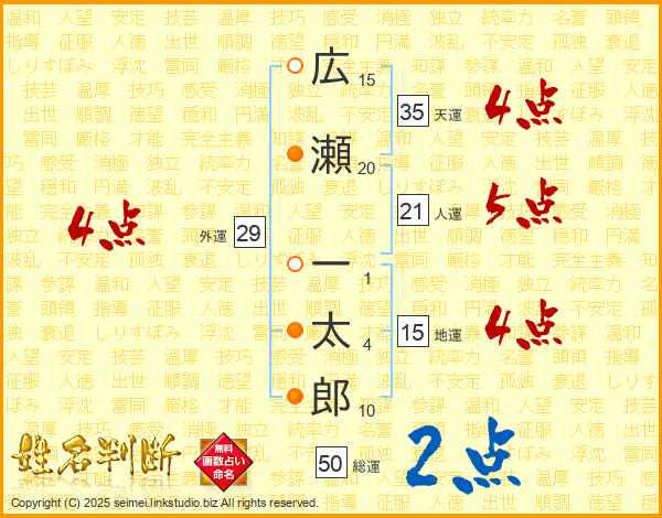 広瀬一太郎さんの総運は50画の2点!