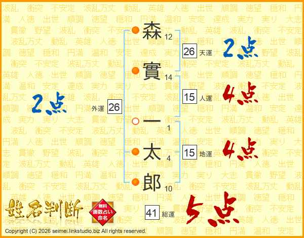 森實一太郎さんの総運は41画の5点!