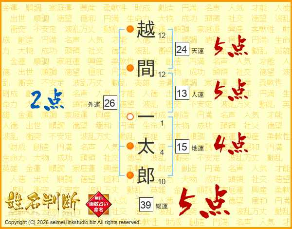 越間一太郎さんの総運は39画の5点!