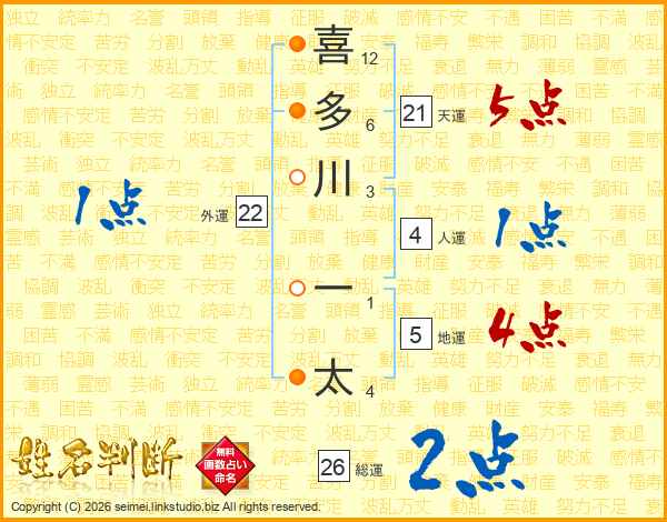 喜多川一太さんの総運は26画の2点!