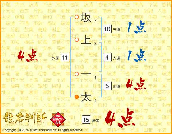 坂上一太さんの総運は15画の4点!