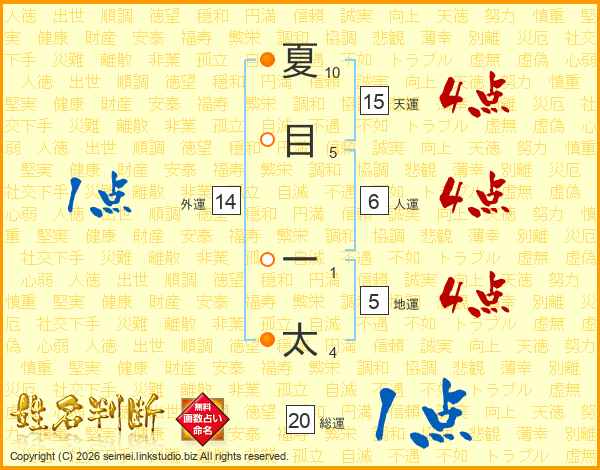 夏目一太さんの総運は20画の1点!